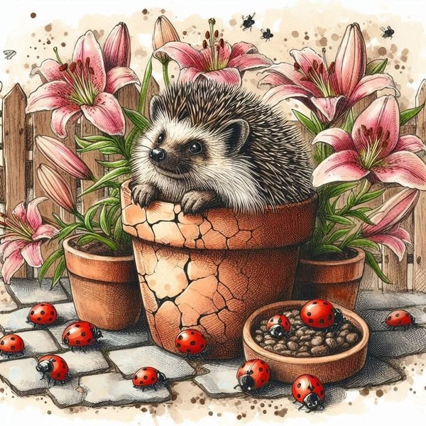 Hérisson et coccinelles