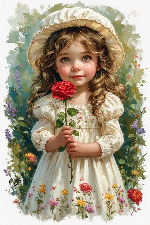 Petite fille avec une rose rouge