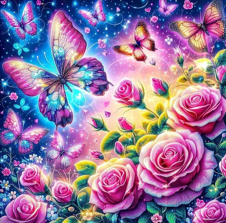 Roses et papillons