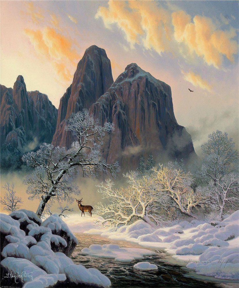Daniel Van der Putten was born in a small farming village near Leyden in Holland. Initially he worked for his father in the family horticulture business, but found that his desire to paint was too strong to ignore. This desire and ability, no doubt, was inherited from his mother and also from his aunt who was a professional portrait artist exhibiting mainly in Holland and America. Daniel married his Scottish wife and settled in Scotland. They worked together from the start and researched and studied various techniques of painting, primarily those of the Great Dutch Masters, giving attention to observing the natural landscape wherever they travelled. Daniel was particularly inspired by the British landscape and moved to England to become a full-time painter. Daniel’s paintings depict the vast array of colour, light and shadow which appear in nature and reveal a unique style all of his own. As an artist of international reputation, his works have been exhibited at The Royal Institute of Oil Painters, London, Scotland and one-man exhibitions in England, Canada, Taiwan and the U.S.A.
